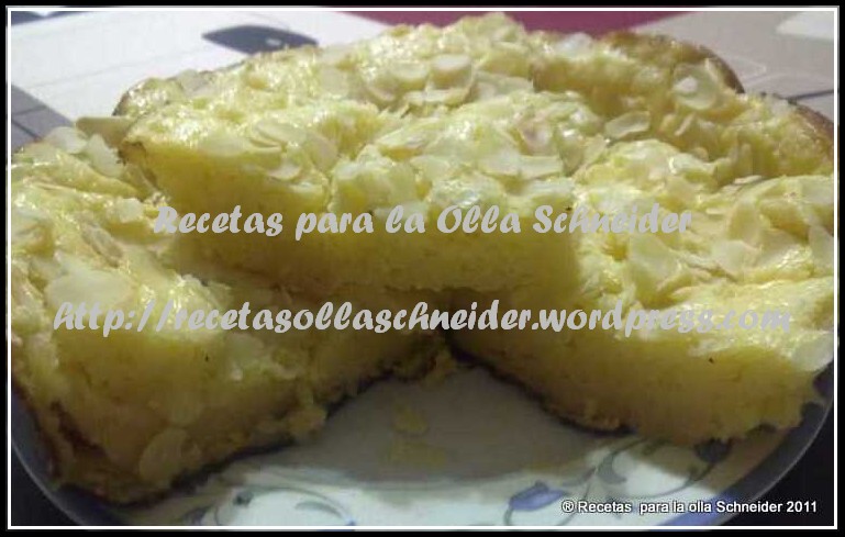 Mezclar todos los ingredientes en un bol hasta conseguir una masa homogénea. Volcarlo en la olla y programar menú pastel (15 min). Una vez que finalice, abrir la olla y comprobar si está hecho (pinchando el pastel con una aguja, si sale sucia programamos otra vez menú pastel, pero lo abrimos a mitad del programa).