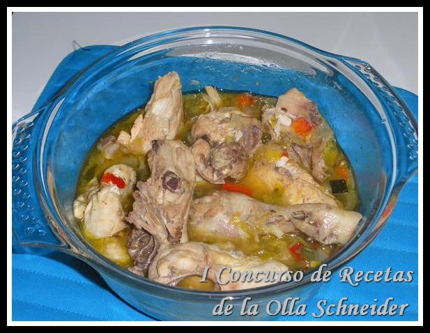 Limpiamos el pollo que ya tenemos cortado, encendemos nuestra olla schneider en función menú pollo y salteamos el pollo. Cuando ya lo veamos a nuestro gusto, echamos las verduras que ya estan cortadas.
