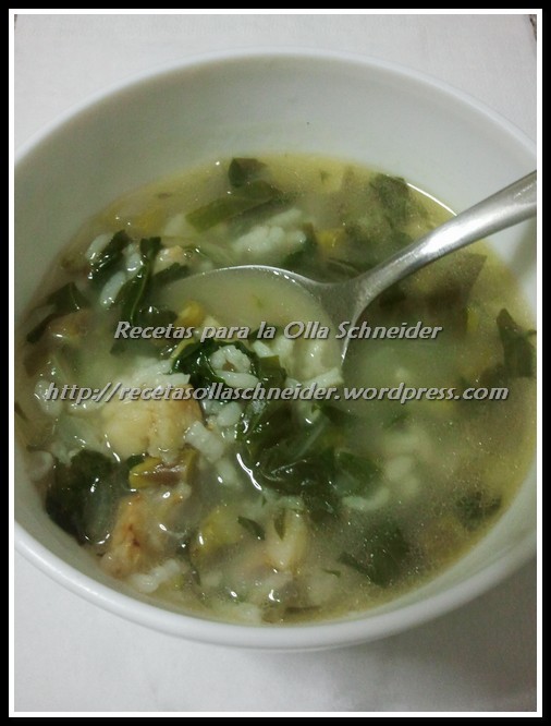 Cerramos, programamos menú arroz. Cuando termine, no dejar reposar mucho tiempo para que no se espese demasiado. Si ésto ocurre, incorporar agua y dejar cocer unos minutos más con la olla abierta (hasta que rompa a hervir nuevamente).