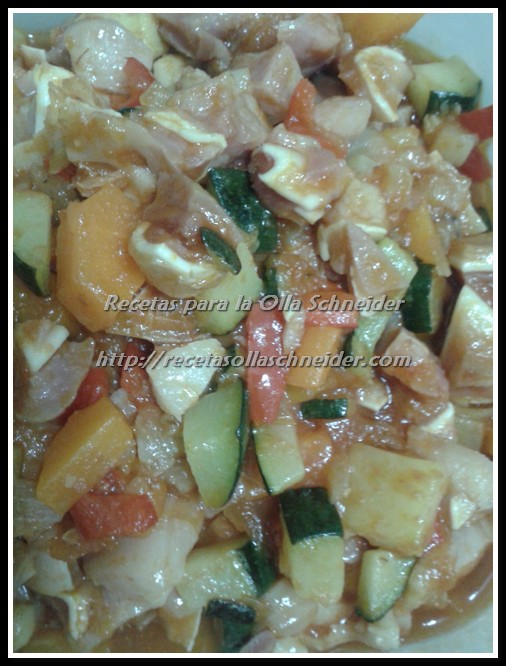 Con la olla abierta, se programa cualquier menú, por ejemplo, pollo (12 minutos), para rehogar las verduras.
