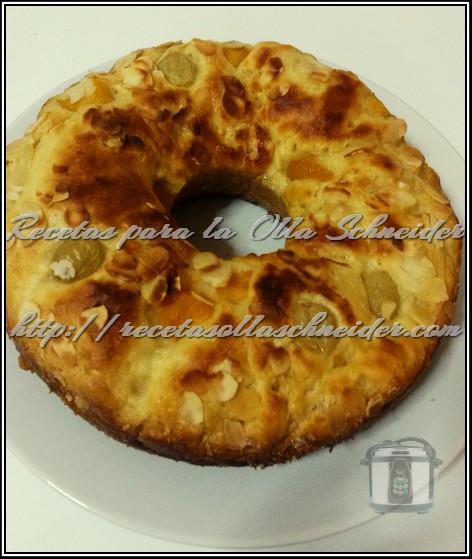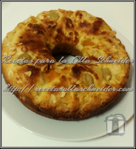 Sacamos la cubeta de la olla y la metemos bajo el grill del horno durante 5 minutos, para que el roscón quede dorado. (No perder de vista el roscón porque se dora muy rápido)