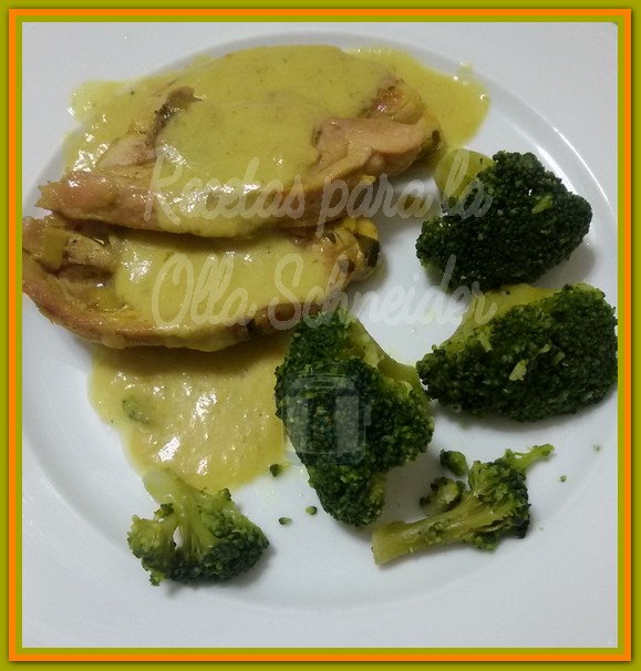 Programar menú Pollo en la Olla Schneider (12 minutos) y cubrir el fondo con aceite de oliva. Cuando esté caliente, sellar las chuletas; sacar y reservar cuando estén doradas (no completamente hechas).